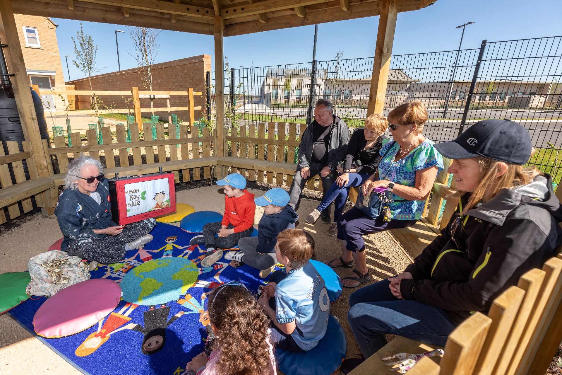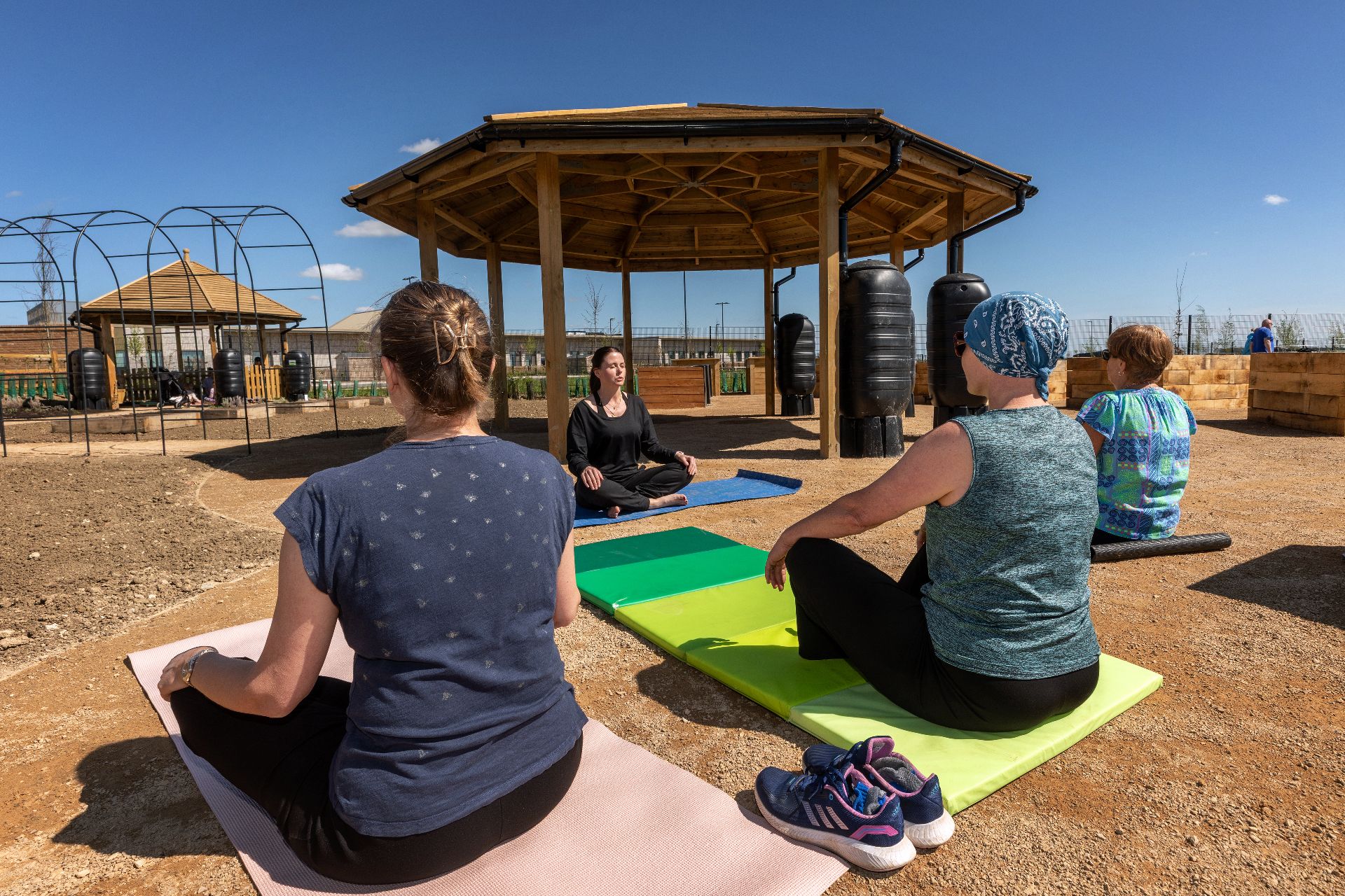 At our launch event in April, we invited residents to try out all sorts of activities. People planted bulbs, scattered wildflower seeds, worked out with kettlebells, and even took part in mindful yoga sessions. The garden was buzzing with energy and laughter. Children explored every corner and listened to professional storyteller Marion Leeper, who whisked them away on interactive adventures with props and audience participation.