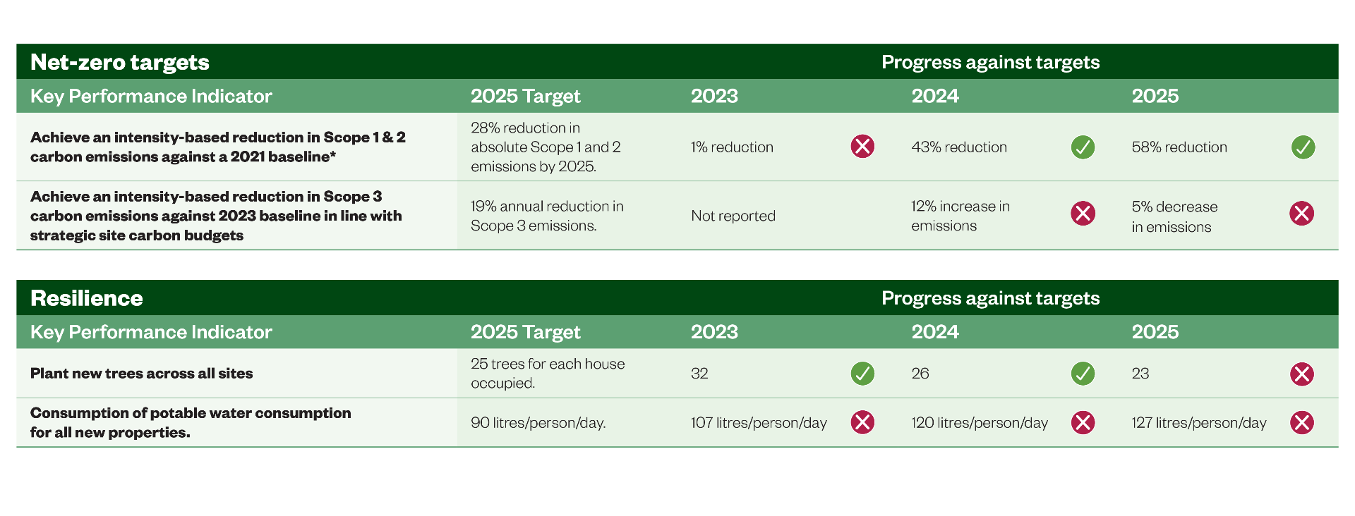 Our 2025 climate-related targets and performance against them are shown in the table below.